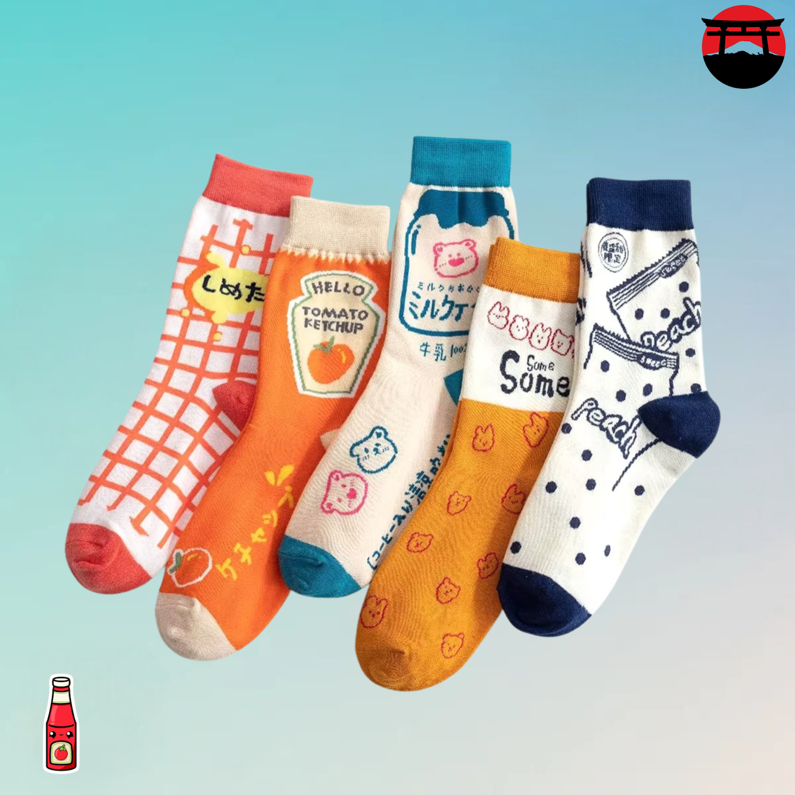 5 Paar Asian Style-Socken – Popkultur aus dem Mini-Markt! 🧃🌸