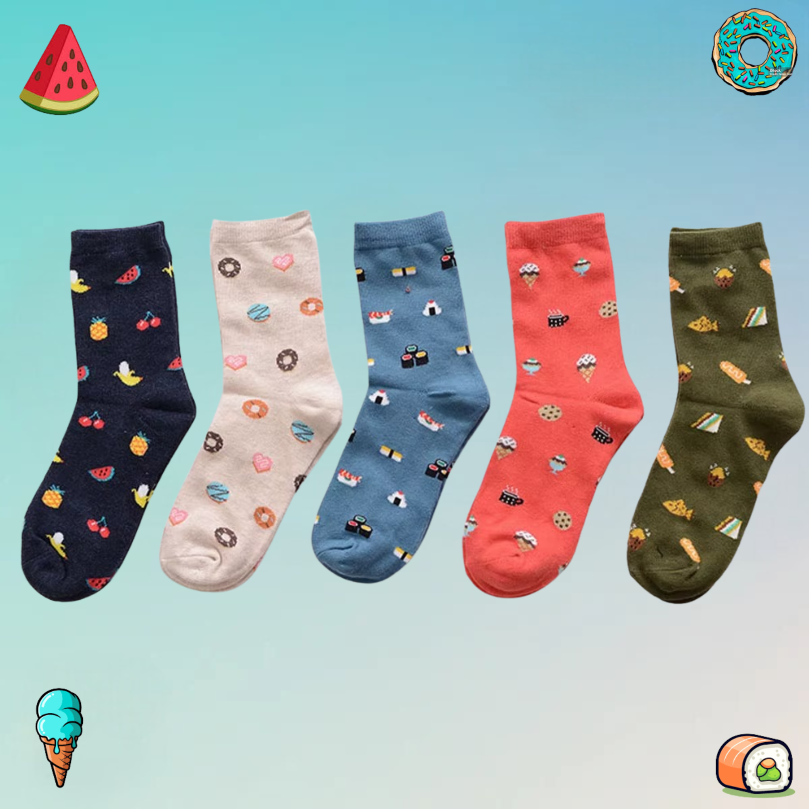 5 Paar Foodie Fun-Socken – Lecker, bunt & voller Style! 🍩🍣