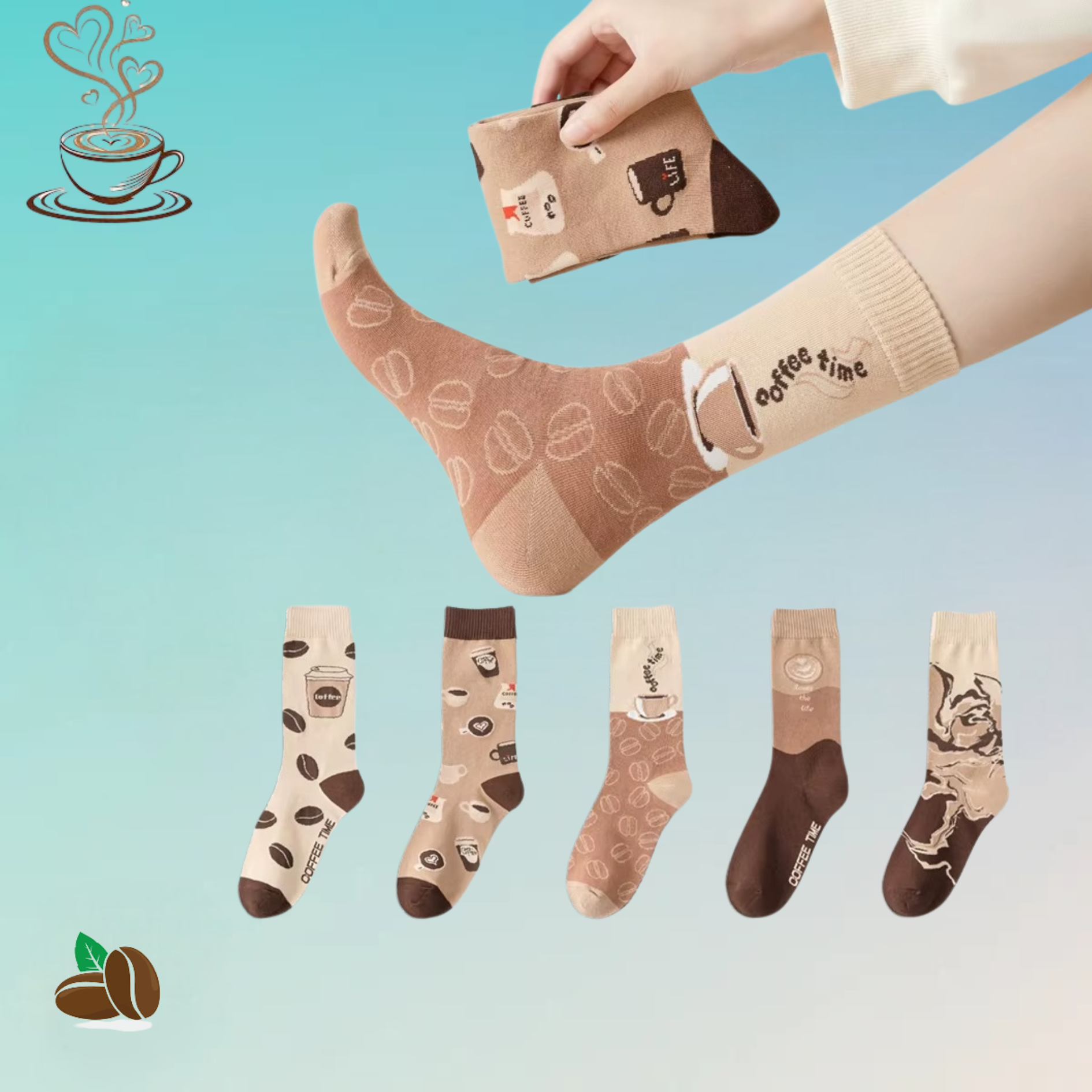 5 Paar Kaffee-Socken – Dein täglicher Begleiter ☕